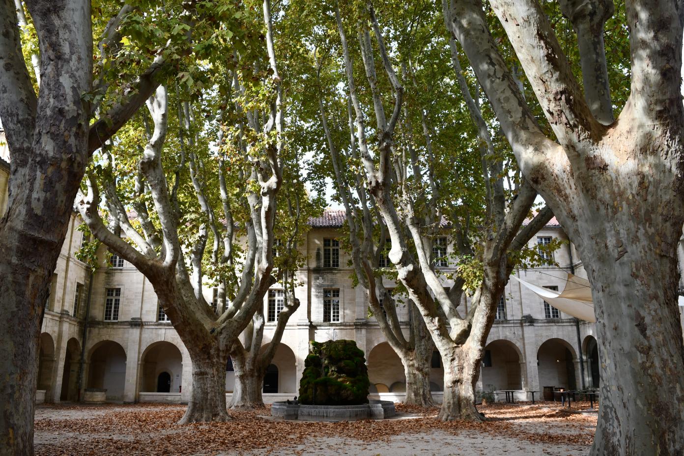 First views of the outside of Hôtel Cloître Saint Louis in Avignon, France.And the entrance to Hôtel Cloître Saint Louis, a bit sideways which normally would drive me bonkers but I was running on fumes by this time.The most impressive view was the courtyard at Hôtel Cloître Saint Louis.The front desk to your right at Hôtel Cloître Saint Louis.A waiting area and bathrooms right behind it at Hôtel Cloître Saint Louis.Creeping into the courtyard where I spent a good chunk of time at Hôtel Cloître Saint Louis.View to the right at Hôtel Cloître Saint Louis.View to the left at Hôtel Cloître Saint Louis.And in love with this peaceful fountain full of moss at Hôtel Cloître Saint Louis.