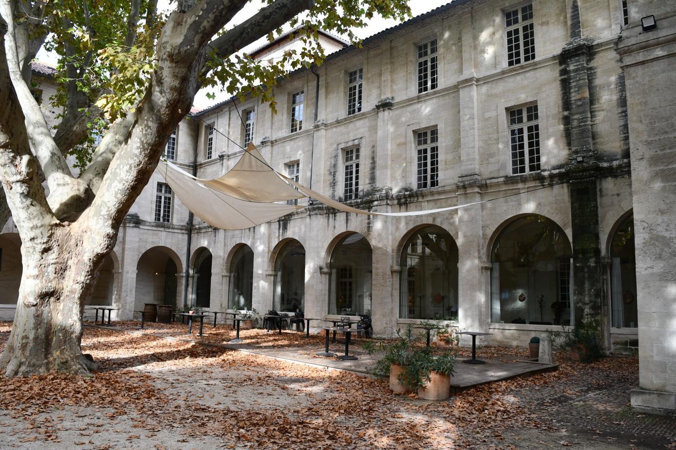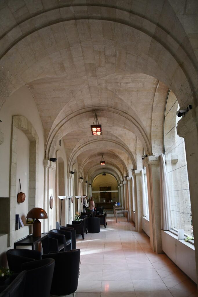 The last two nights of the Cote D’Azur press trip, we spent at Hôtel Cloître Saint Louis in Avignon, France. This 16th century building is built on the remains of a Jesuit novitiate (like a Jesus school) and has been a military hospital and a branch of the Hôtel des Invalides de Paris over the centuries. Keeping all the beautiful architectural bones in tact since 1991, the Cloître has been a hotel and center of cultural activities with 80 spacious guest rooms. Walkable for just a few minutes from the famous Pont d’Avignon (bridge of Avignon) and Palais des Papes (Palace of Popes), it is rated a 4-star hotel with many views of the courtyard, onto the private garden and includes an unusual chapel walk to access rooms. Yes, there are tiny elevators if needed and lots of stairs as an alternative. An expanded European style buffet breakfast is included each morning to get you going and quite satiating. It’s an old building obviously so hot water may be an issue with so many rooms. If only I looked upwards to admire the magnificent dome as well!