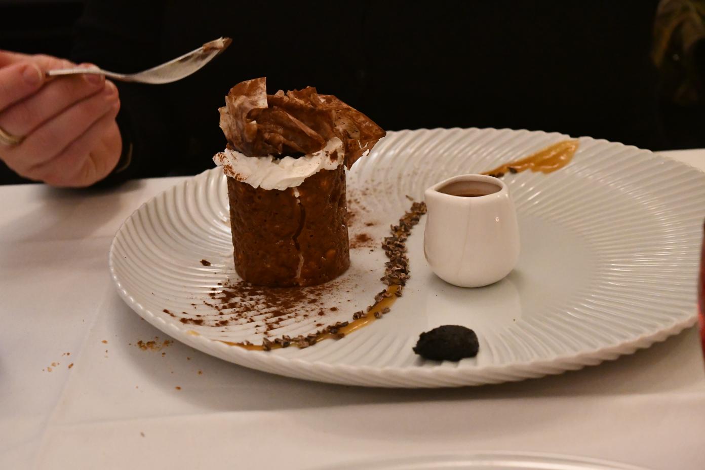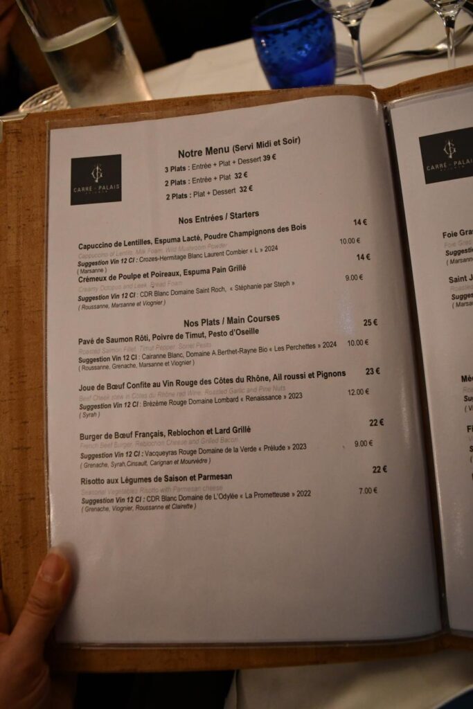 Entering Le Carré du Palais at night from the patio in Avignon, France.The back patio at night at Le Carré du Palais.Dinner at Le Carré du Palais includes many affordable options in Avignon, France. I did the wine pairing.To start, the creamy octopus and leek at Le Carré du Palais. Sorry for the low lit photos not sorry but using my flash and/or a small light would have been a big faux pas and I’m not one of THOSE influencers.A plate of delicious artwork at Le Carré du Palais otherwise known as salmon. Every bit was sheer perfection at a great price!I kept stuffing my face full of chocolate so opted for a sort of fall flavored cannoli at Le Carré du Palais.My friend across from me delved into this chocolate tower at Le Carré du Palais and seemed to enjoy it immensely.And during the daytime, the back of the building looks completely different at Le Carré du Palais. Formerly a bank, it makes sense the pope would keep his money right next door.Make sure to enjoy lunch or dinner at Le Carré du Palais but on the other side with views of the Pope’s Palace in Avignon, France.
