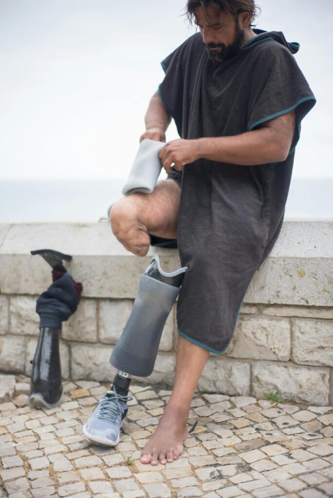Once the prostetic leg is attached, it offers quality of life again for disabled travel.